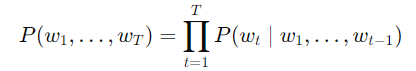 - 문장 w1, w2, …, wT의 확률을 최대화
